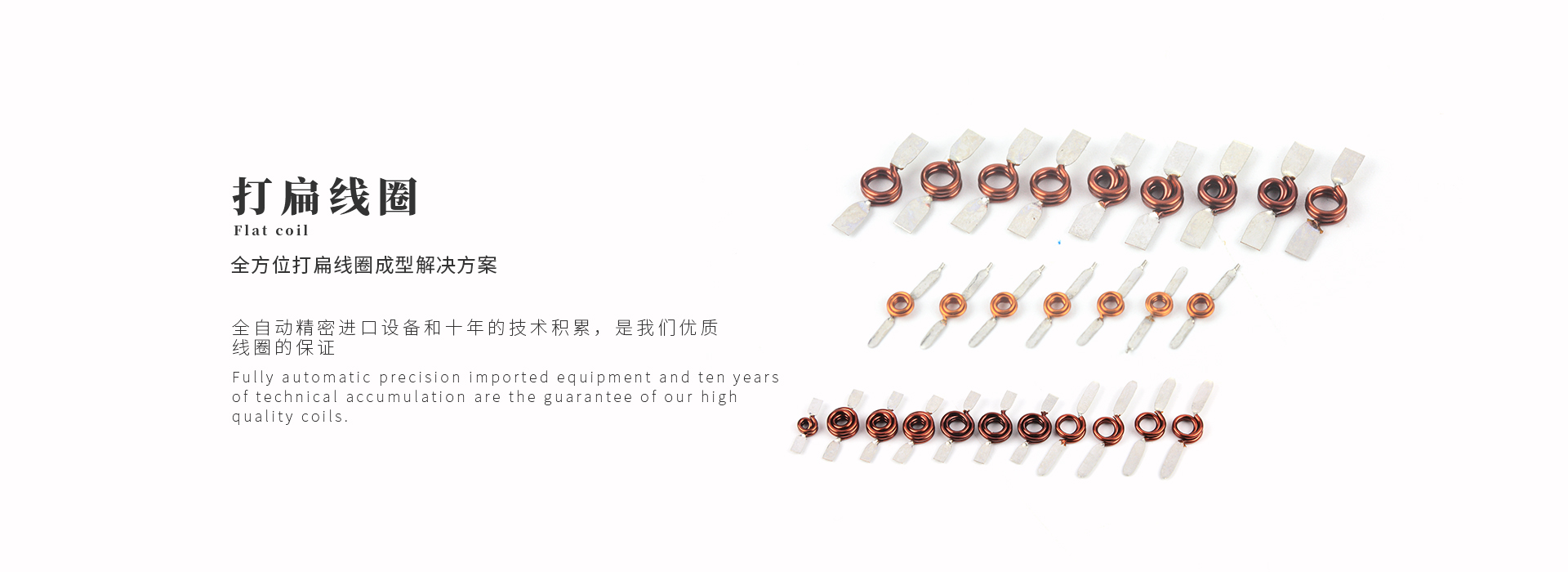金泰德公司引進先進專用設備、技術、工藝材料,可按客戶的需求生產制作各類電感線圈,自粘線圈,電焊線圈,打扁線圈,空芯線圈。